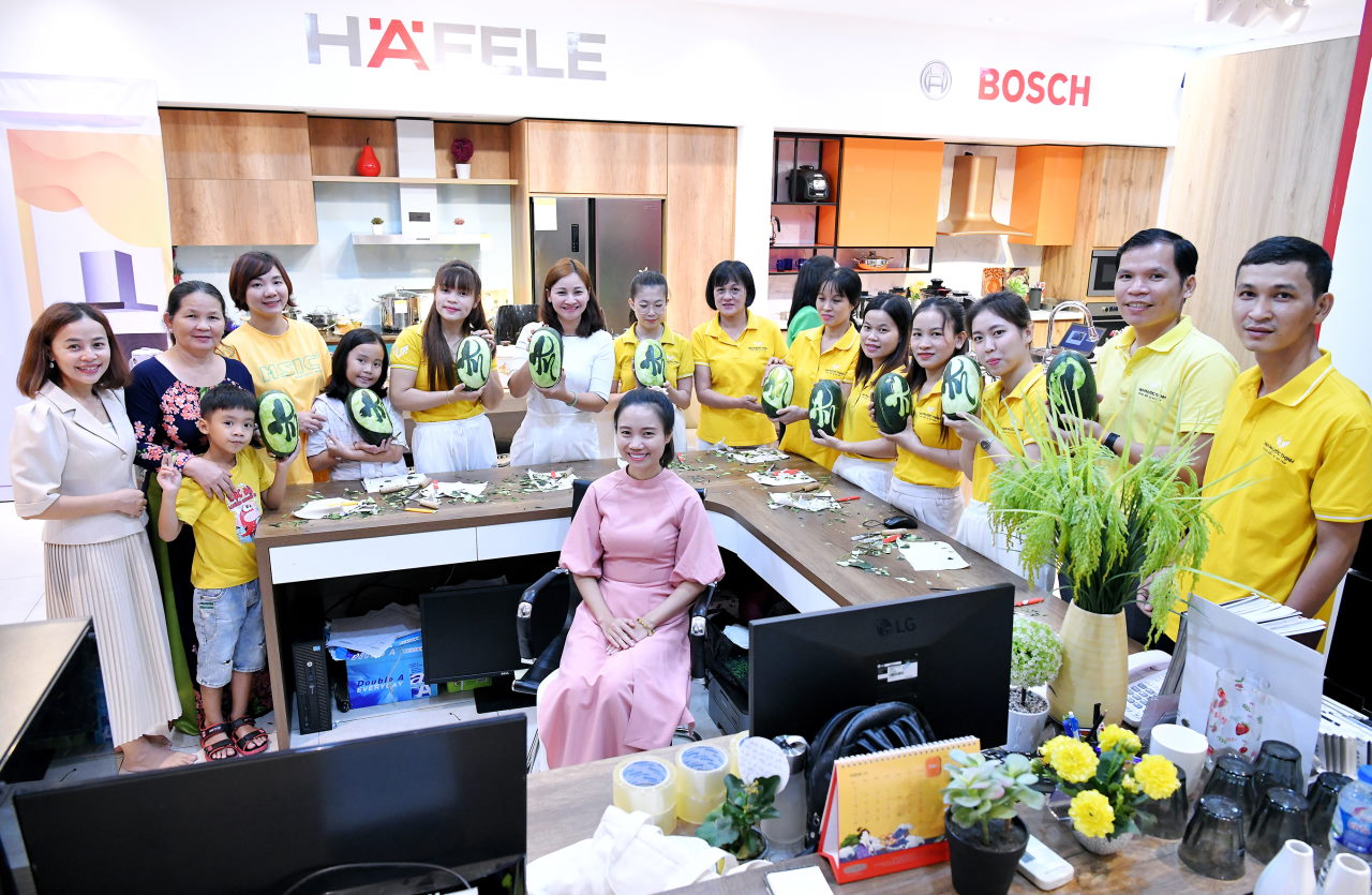 Một tiết mục rất độc đáo là “Nghệ thuật điêu khắc trái cây” do Cô Hoàng Kim hướng dẫn. Cô là người sáng lập thương hiệu Hoàng Kim Các chuyên về các sản phẩm thủ công. Với bàn tay khéo léo, tỉ mỉ và sự sáng tạo của cô, trong phút chốc những quả dưa hấu xanh đã được khắc lên những chữ thư pháp rất đẹp, độc đáo và đầy tính nghệ thuật. Cô cho biết quá trình khắc chữ lên trái cây chính là việc hành thiền, nó cần sự tập trung cao độ và trong khi thực hiện bạn phải giữ tâm thật trong trẻo, tĩnh lặng thì mới cho ra được những tác phẩm mang tính sáng tạo cao.