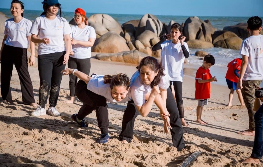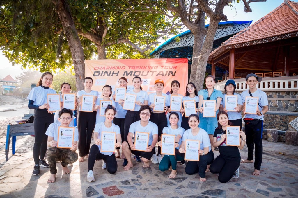 Tiếp sau giờ nghỉ trưa là đến chương trình team building. Các thành viên đã có dịp thể hiện hết mình với các trò chơi vận động trên biển. Dù phải trải qua những giờ phút thử thách căng thẳng, nhưng gương mặt ai nấy cũng đều cười vui rạng rỡ. Kết thúc hành trình, mỗi thành viên đều lưu lại ấn tượng khó quên cho riêng mình bằng những bức ảnh kỷ niệm và cả chứng nhận Charming Trekking Tour.