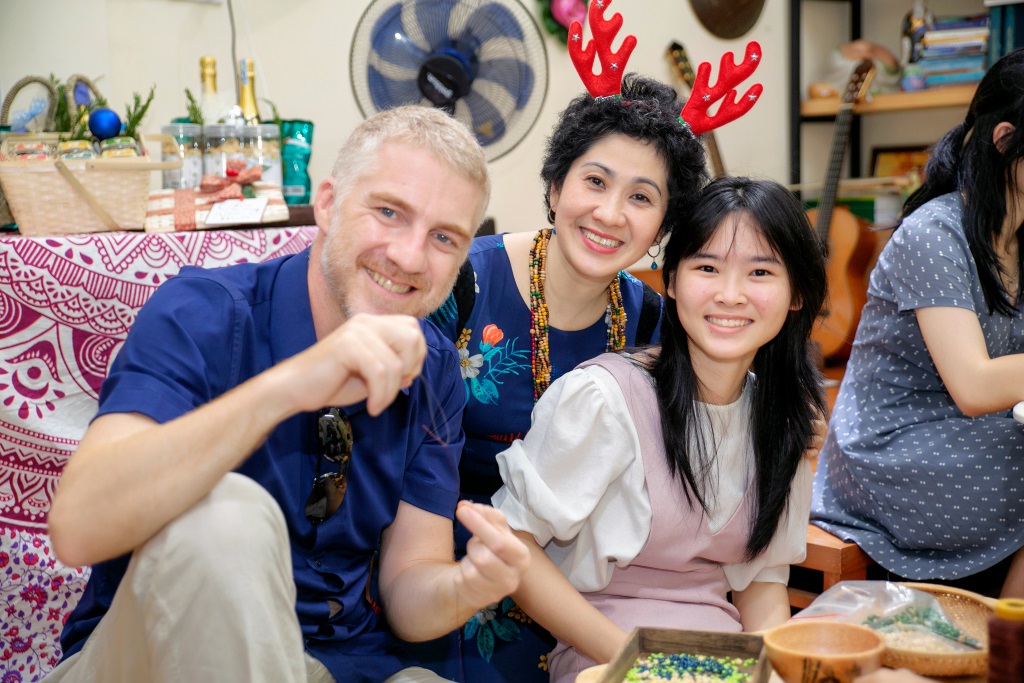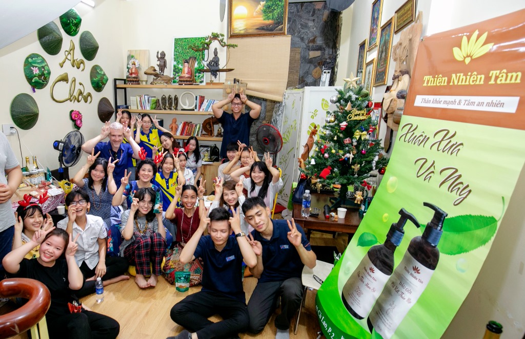 Trong không khí nhộn nhịp và náo nức của mùa Giáng sinh, mọi người đã cùng quây quần bên nhau ăn bánh, uống trà, kể cho nhau nghe những câu chuyện, những trải nghiệm cuộc sống và công việc. Lúc này, các bạn ở Cộng Đồng Giáo Dục Núi Tượng Núi Tượng đàn guitar và hát những bài hát tiếng Anh thật hay, làm cho không khí Noel càng thêm lung linh và xúc động. Nhiều sản phẩm của Thiên Nhiên Tâm như: hạt điều, trà mãng cầu, chuỗi hạt, những gói quà tết… được mang ra để thưởng thức và chơi trò chơi dễ thương, vui nhộn.
